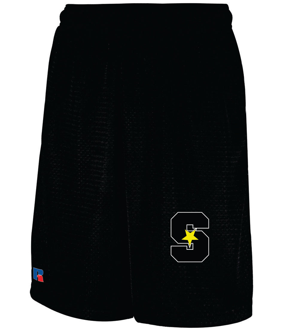 Russell Athletic Dri-Power Mesh ShortStyle: 659BAF cloth – 100% nylon Tricot meshTeam athletic cutSolid Tricot lining7″ inseam – youth“R” Russell logo on upper right hip
