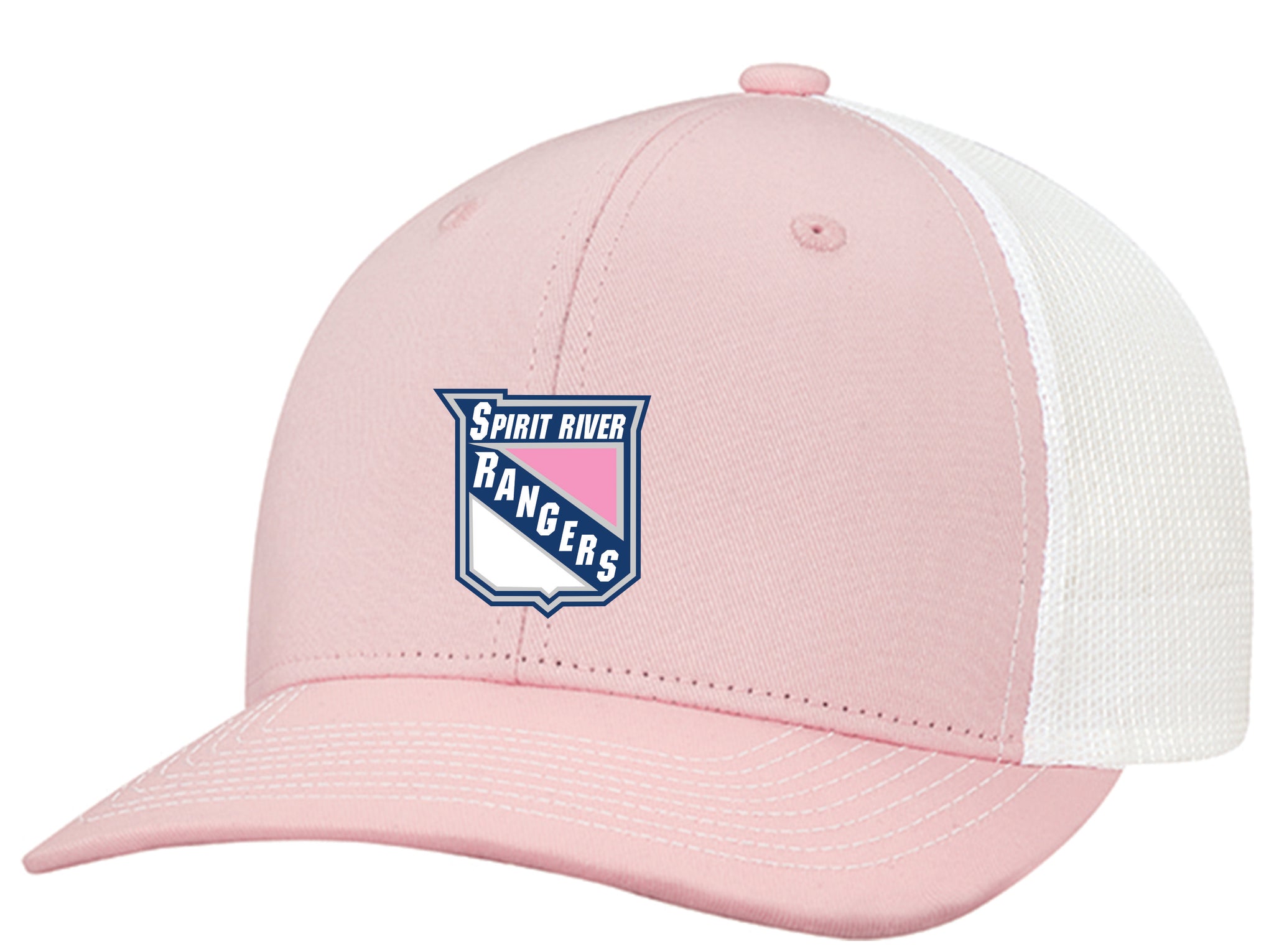 Deluxe Chino Twill / Polyester Mesh- 6 Panel Constructed Pro-Round (Mesh Back)- Deluxe buckram laminated front panels with Pro-Stitch- Slightly-curved peak with 8 rows of stitching- Plastic adjustable back strap